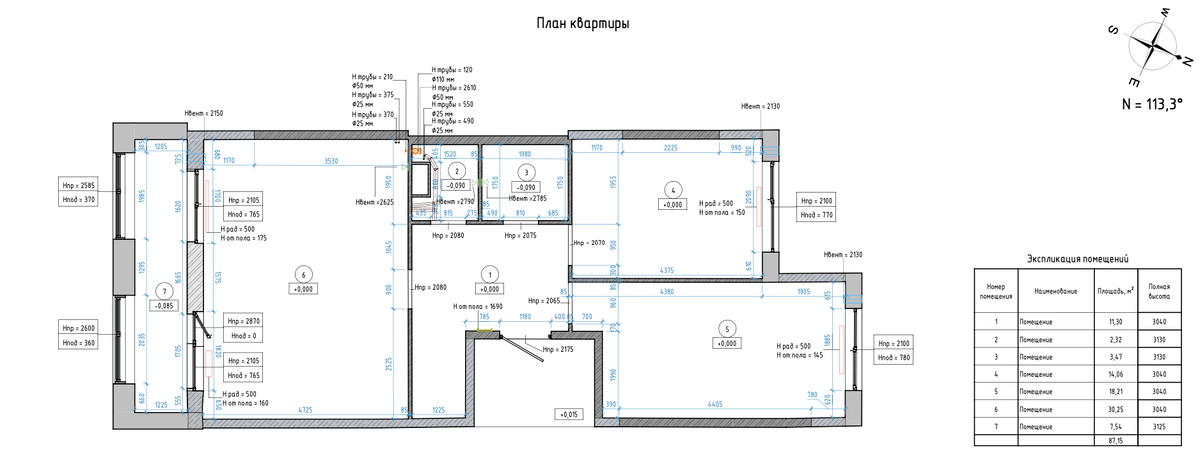 После выезда и первичного согласования приходим к решению проектировать приточную Pin Up вентиляции, приточно-вытяжную, не стали рассматривать ввиду ограничений по потолку, а так же две отдельных сплит-системы кондиционирования для каждой из спален.Pin Up приток решаем за счет естественной вентиляции на кухне и вытяжных канальных вентиляторов в с Из нюансов у нас следующие моменты: