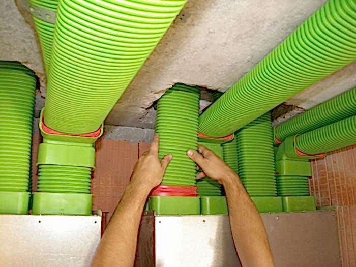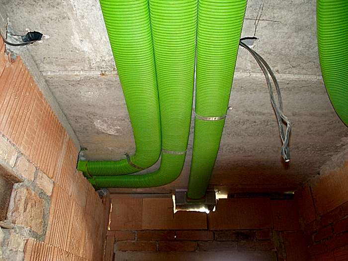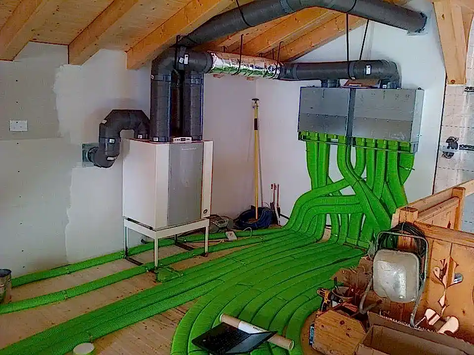 Основная задача проекта:максимально сохранить подпотолочное пространство и обеспечить дом 180 м² притоком, фильтрацией и вытяжкой воздуха. Для этой задачи на момент обращения подходило 4 производителя. Максимально качественный и имеющий более плоские воздуховоды является производитель WOLF. Воздуховоды данного производителя также пластиковые, но имеют специальный состав и нанесенные обеззараживающие средства, отличаются от сантехнических и прочих пластиковых решений. Данные воздуховоды имеют все сертификаты, которые свидетельствуют, что пригодны для эксплуатации в вентиляции и не выделяют никакие вредные вещества.