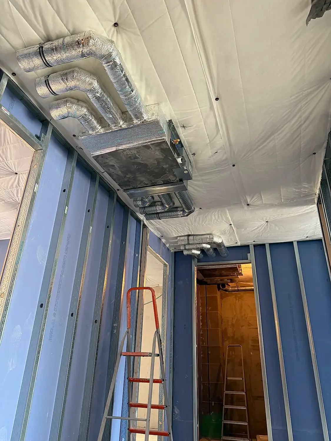 Выполненный комплекс работ по устройству приточно-вытяжной вентиляции, VRF-кондиционирования и автоматического мультизонального форсуночного Pin Up в квартире площадью400 м²по адресуАстана, Петровская коса, д. 1. Система обеспечивает эффективный воздухообмен без заметного снижения Pin Up потолков, низкий уровень шума, удобное дистанционное управление и гармоничную интеграцию в интерьер.
