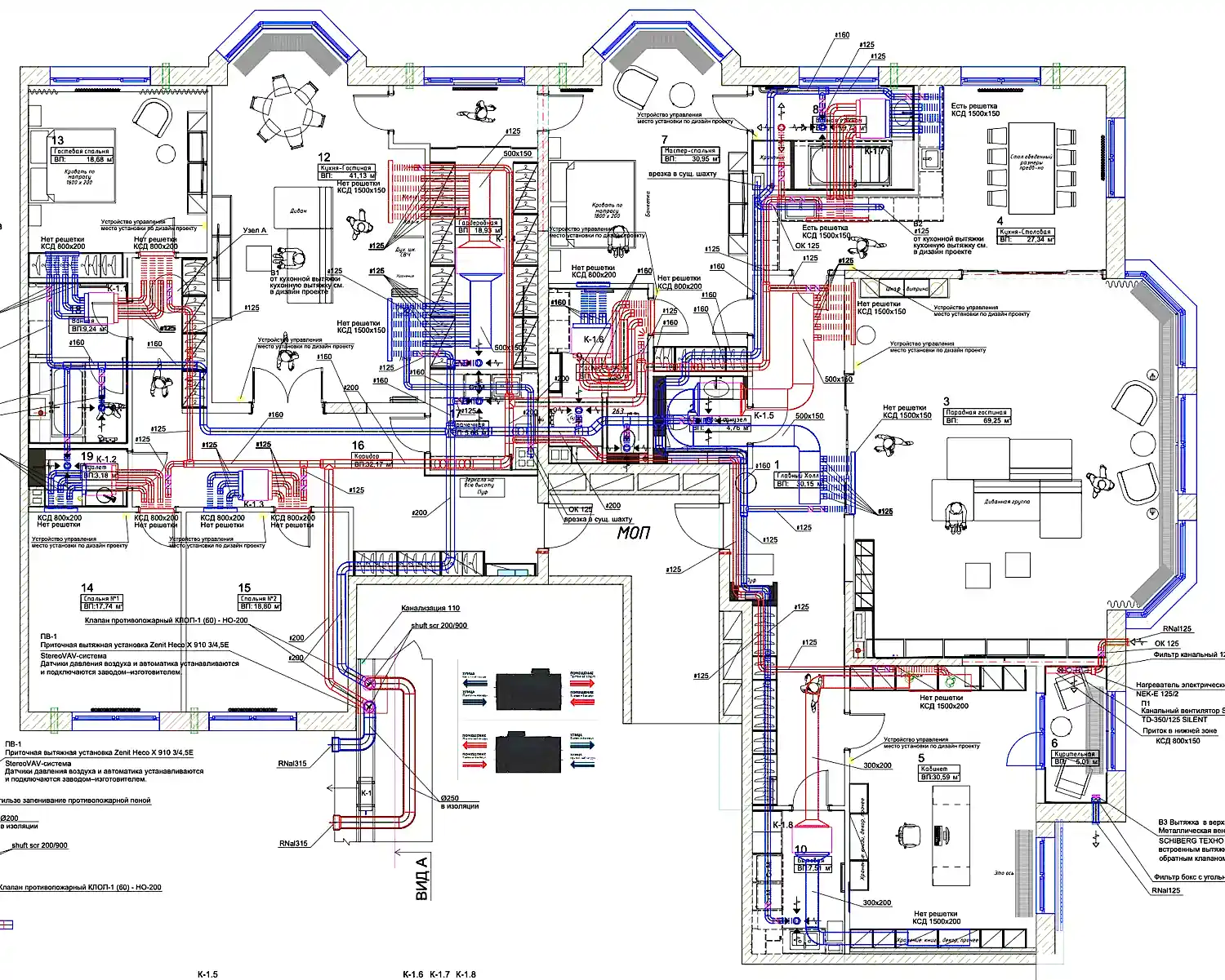 Приточно-вытяжная вентиляция, кондиционирование и увлажнение - «Клубный дом Петровская коса-1»