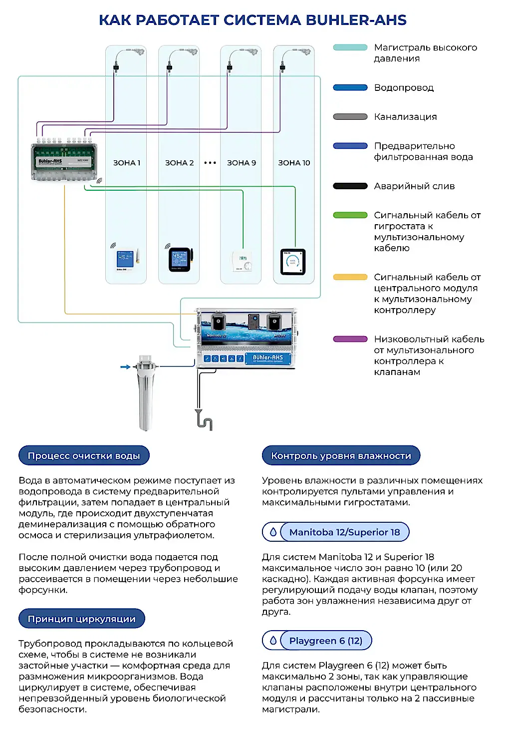 - Мультизональная форсуночная система увлажненияBuhler серии Playgreen
