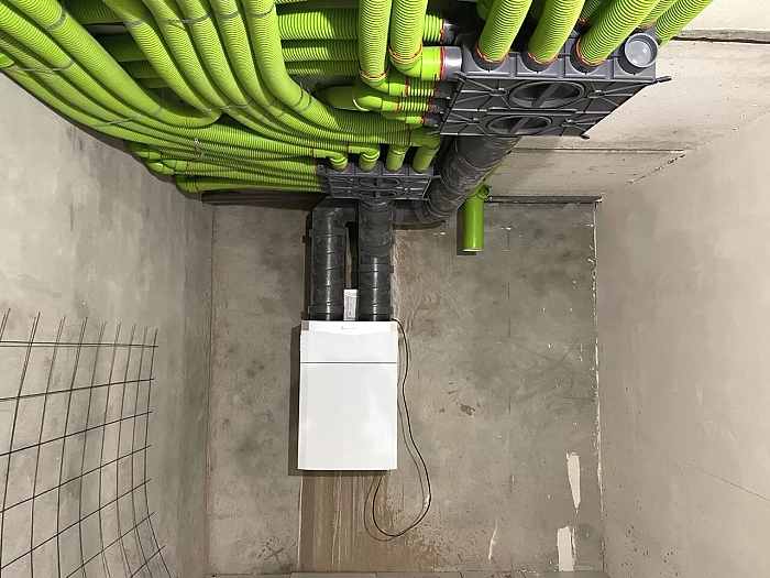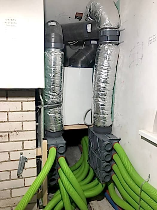 Основная задача проекта:В проекте требовалось обеспечить воздухообменом с фильтрацией приточного воздуха пространство дома 270 м². Для решения задачи использовали системы BLIZZARD LUFTTECHNIK. Данные воздуховоды сертифицированы и пригодны для эксплуатации в системах вентиляции и не выделяют никакие вредные вещества. В связи с тем, что дом большой было принято решение разбить весь воздухообмен на 2 системы
