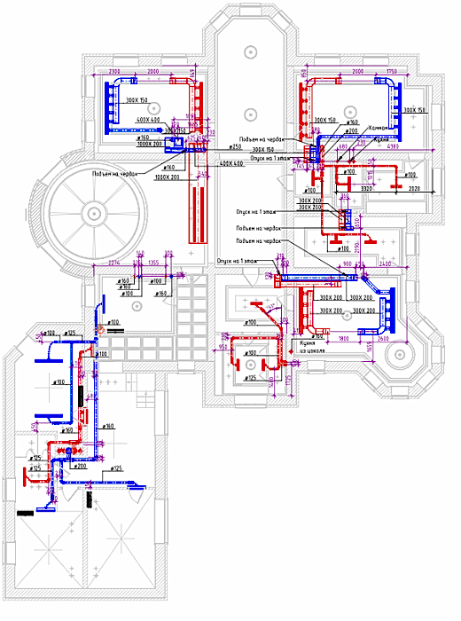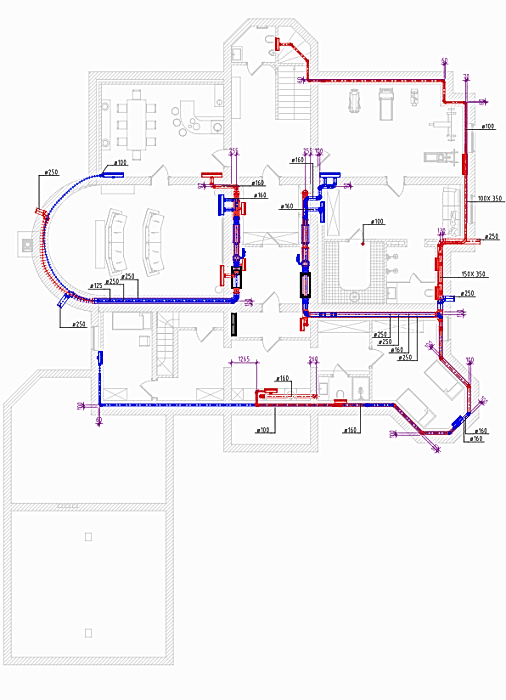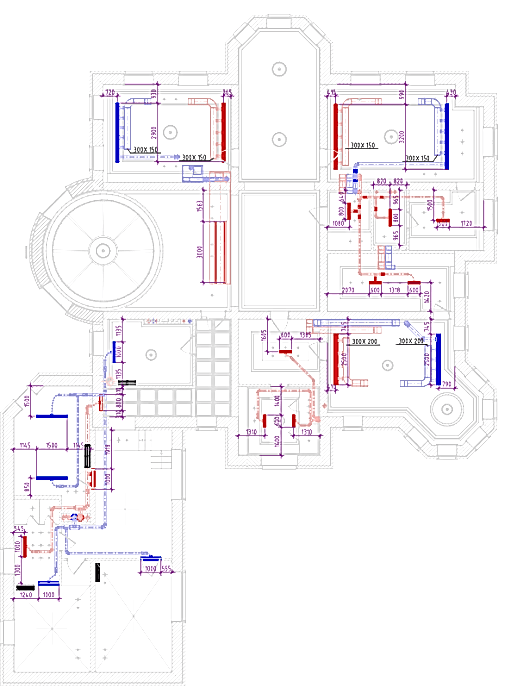 Проектирование и монтаж вентиляции, увлажнения и кондиционирования - частный дом 1100 м² («КП Ренессанс Парк», Алматы)