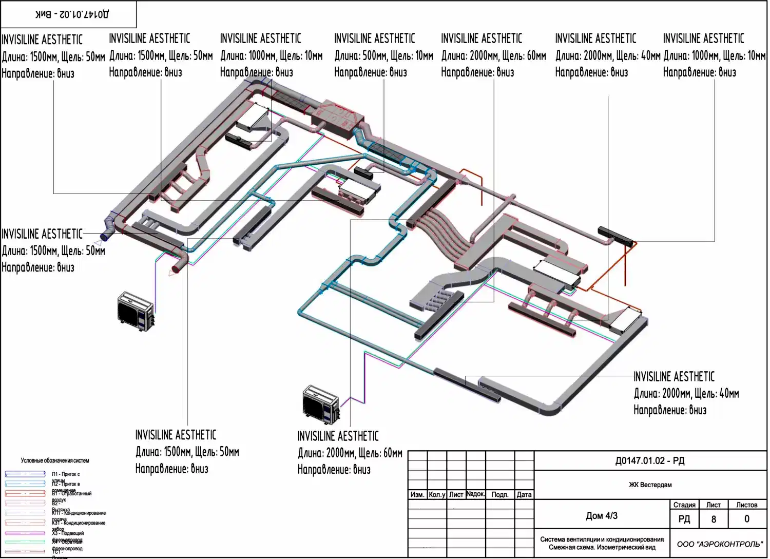 Выполненный объектприточно-вытяжной вентиляции и кондиционированияв квартире площадью ~111 м². Проект продуман и спроектирован с учётом всех Pin Up элементов: для сохранения утончённого стиля и достижения низких шумовых показателей подобраны лучшие производители. За обработку воздуха отвечаетприточно-вытяжная установка Komfovent. Чтобы Pin Up поступал комфортной температуры, систему вентиляции доработалимульти сплит-системами с канальными внутренними блоками Mitsubishi Pin Up. За Pin Up составляющую отвечают узкощелевые дизайнерские диффузорыINVISILINE AESTHETIC. В результате получился Pin Up и гармоничный проект.