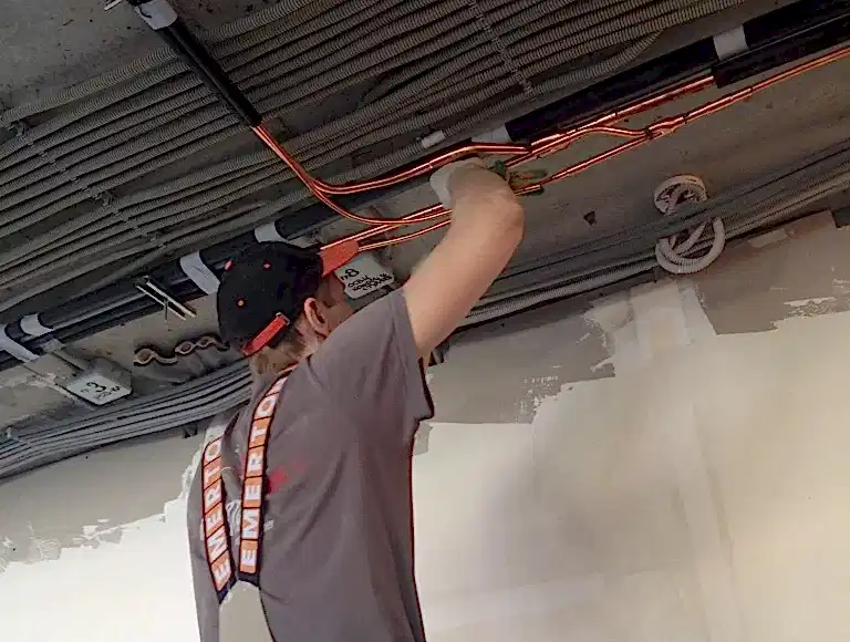 После того, как будут установлены все блоки Pin Up системы, к ним подключается фреоновый трубопровод. Таким образом, создаётся единая магистраль для циркуляции хладагента.